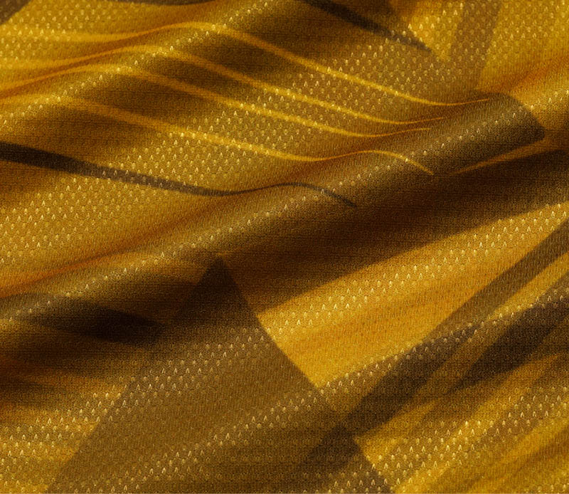 『ブライトバモスシャツ』&『ブライトバモスショーツ』には、上写真の「ブライトドット」という素材が採用されている。この生地は吸汗速乾機能に優れているうえ、キラキラとした光沢感があって、身にまとった選手をまぶしく輝いているように見せる効果がある。