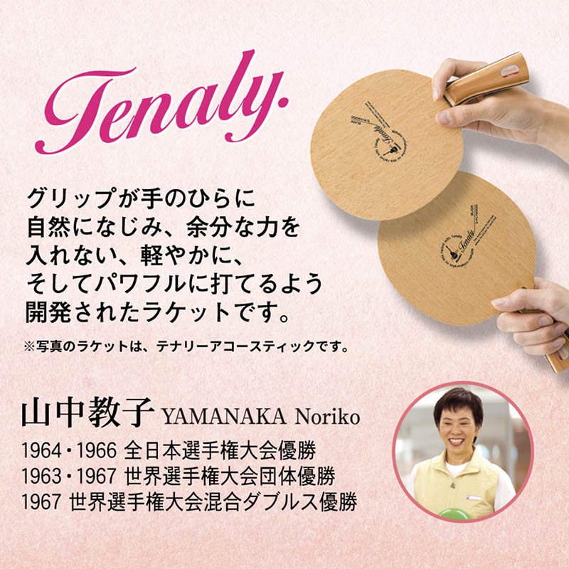 握った瞬間、世界が変わったように感じるラケットがある。その名も『テナリー』。1999年に初めて登場したこのラケットは、1967年世界混合複優勝の山中教子さんが考案・開発した。