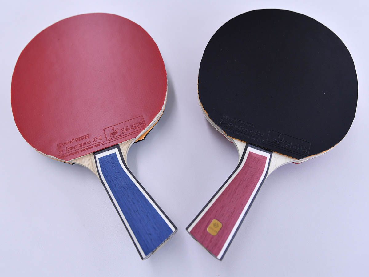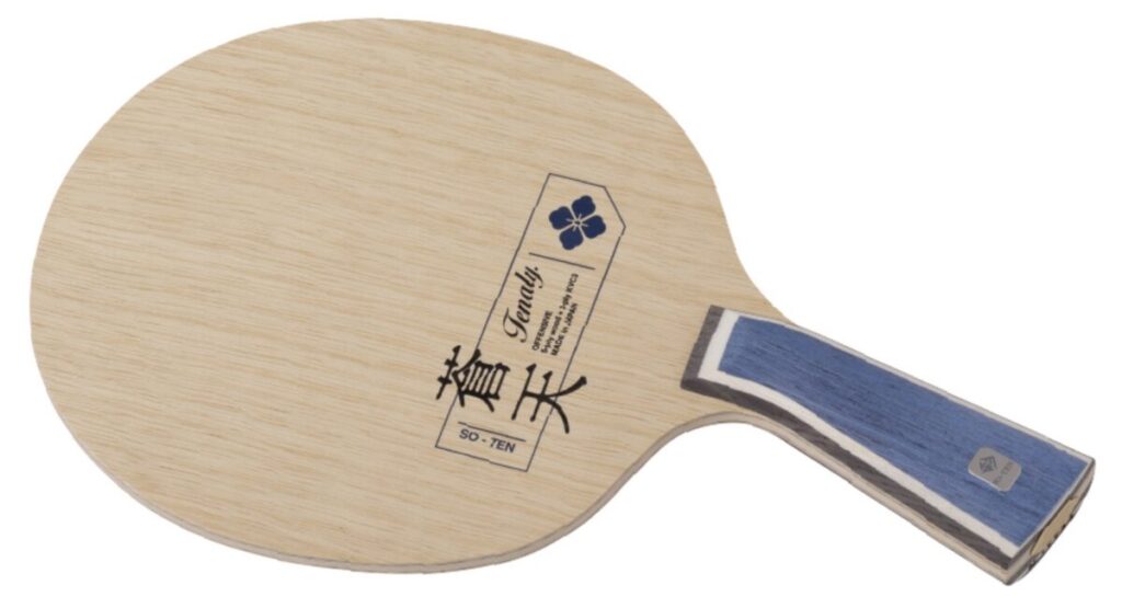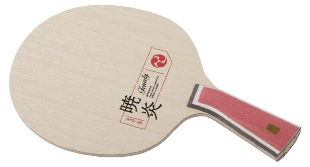 軽快な打球感と、高反発から生まれる直線的な弾道が特徴の『暁炎』と、グッと来る手応えと、しなやかさから生まれる高い弾道を特徴とする『蒼天』。これはいずれも、ニッタクのベストセラーモデルだが、「本家」(通常のシェーク/中国式ペン)と、それぞれの『テナリー』モデルには、結構な違いがある。