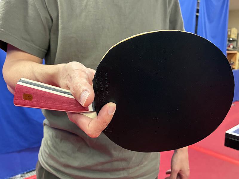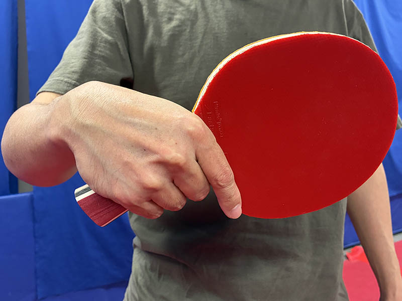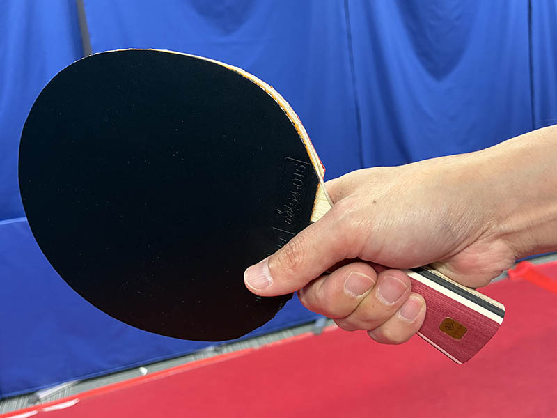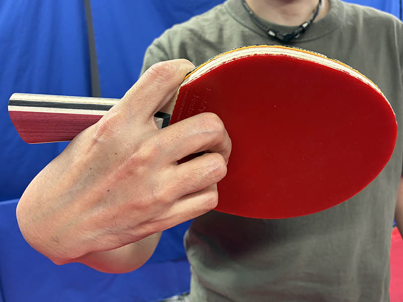 ちなみに、『テナリー』はペン持ちもできる。親指が自然にグッと深く入る形になるので、親指を中心にラケットを操作しているペンプレーヤーなら、一度試してみる価値があると感じた。シェークのバックハンドと同様、ペンでも裏面バックハンドが非常にやりやすいのが利点。バックショートでは少しヘッドが上がる形になり、相手ボールに押されにくいのが強みだ。