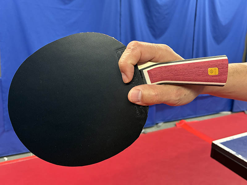 フォアハンドに関しては、握りが非常に安定するため、ミスが少なくなる印象。とりわけ前陣でのドライブ・スマッシュや、台上のストップ・ツッツキ・フリックといった細かい技がやりやすい。フォア・バックの切り替えも非常にスムーズなので、前陣で両ハンドプレーをする速攻タイプの選手にかなりオススメだ。