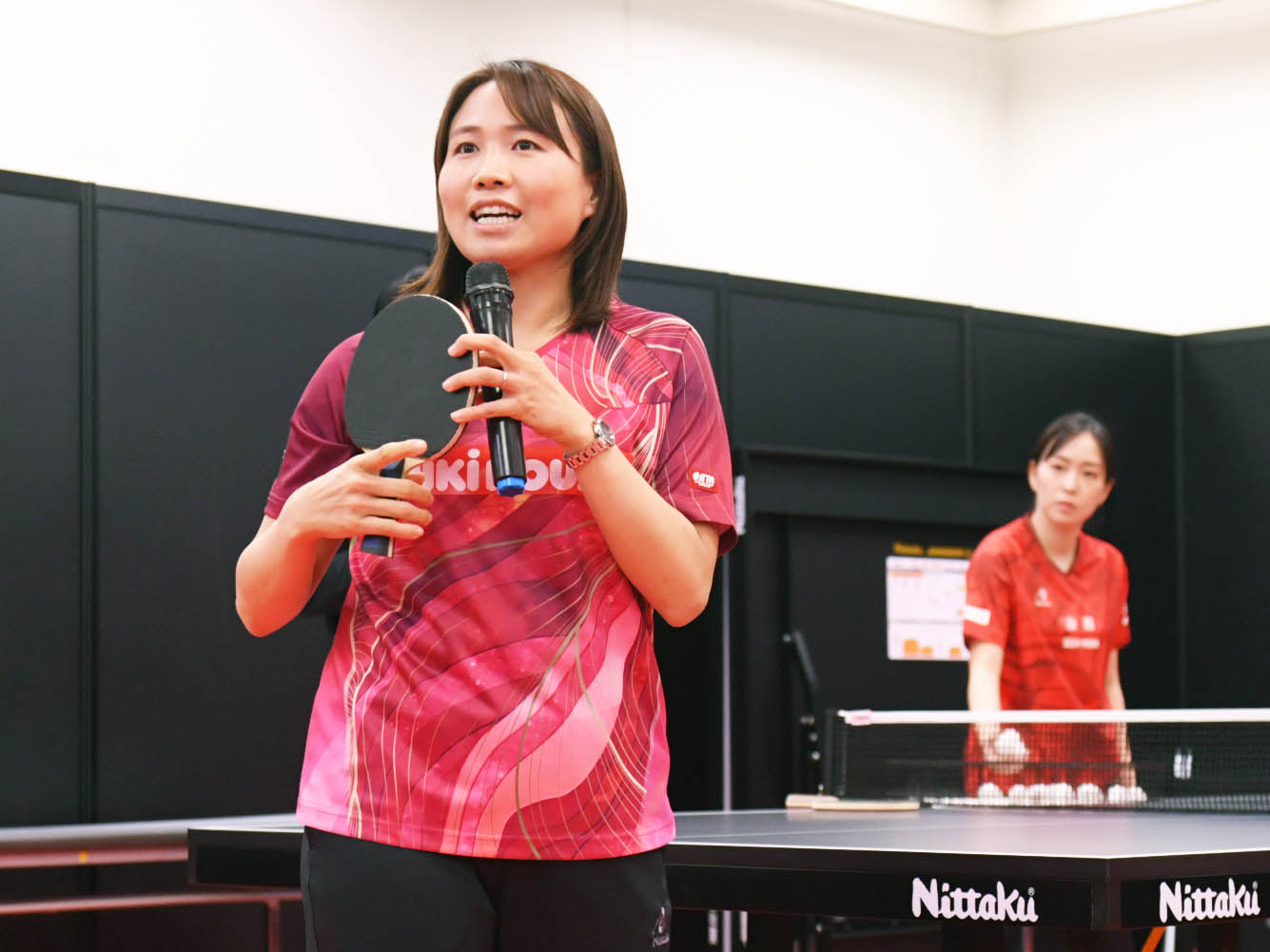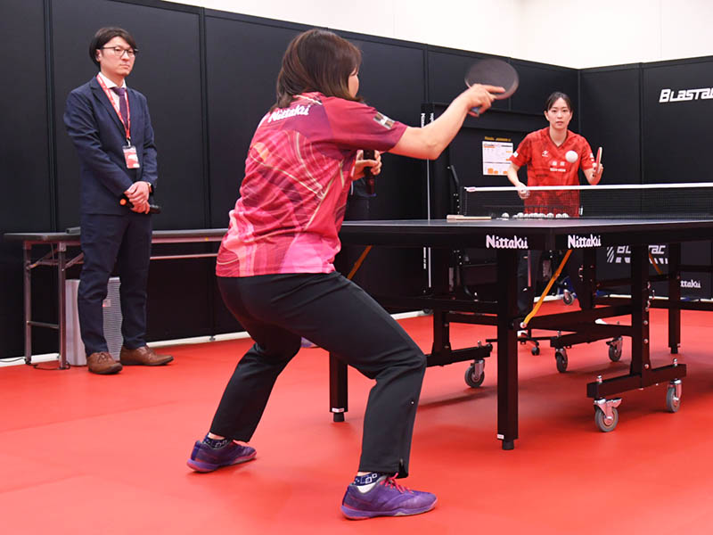去る2026年3月10日に「2026卓球メーカー展示会」のニッタクブースで行われたイベント〈「ブラスタック」を探ろう!〜中級者に合うラバーってなに?〜〉。ゲストとして登場した、ニッタクエグゼクティブアドバイザーの平野早矢香さん(ミキハウス)が、実演を交えながら『ブラスタック』の使用感を語ってくれた。